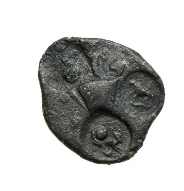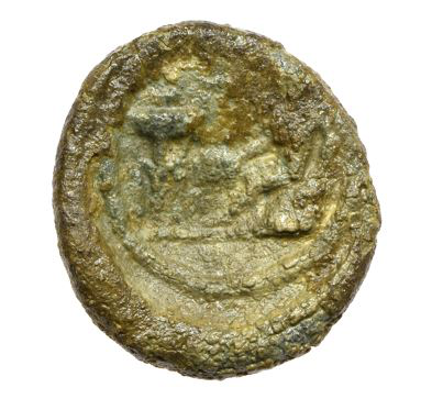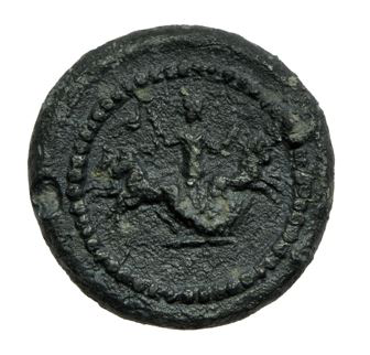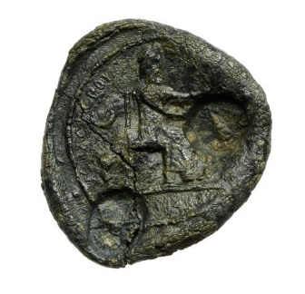 Lead token with Herakles reclining and tripod, referring to Commodus.
