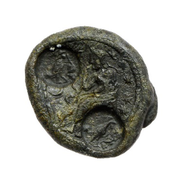 Lead token for the Panathenaia and/or the Theseia with Athena bust on face a and Theseus slaying the minotaur on face b.